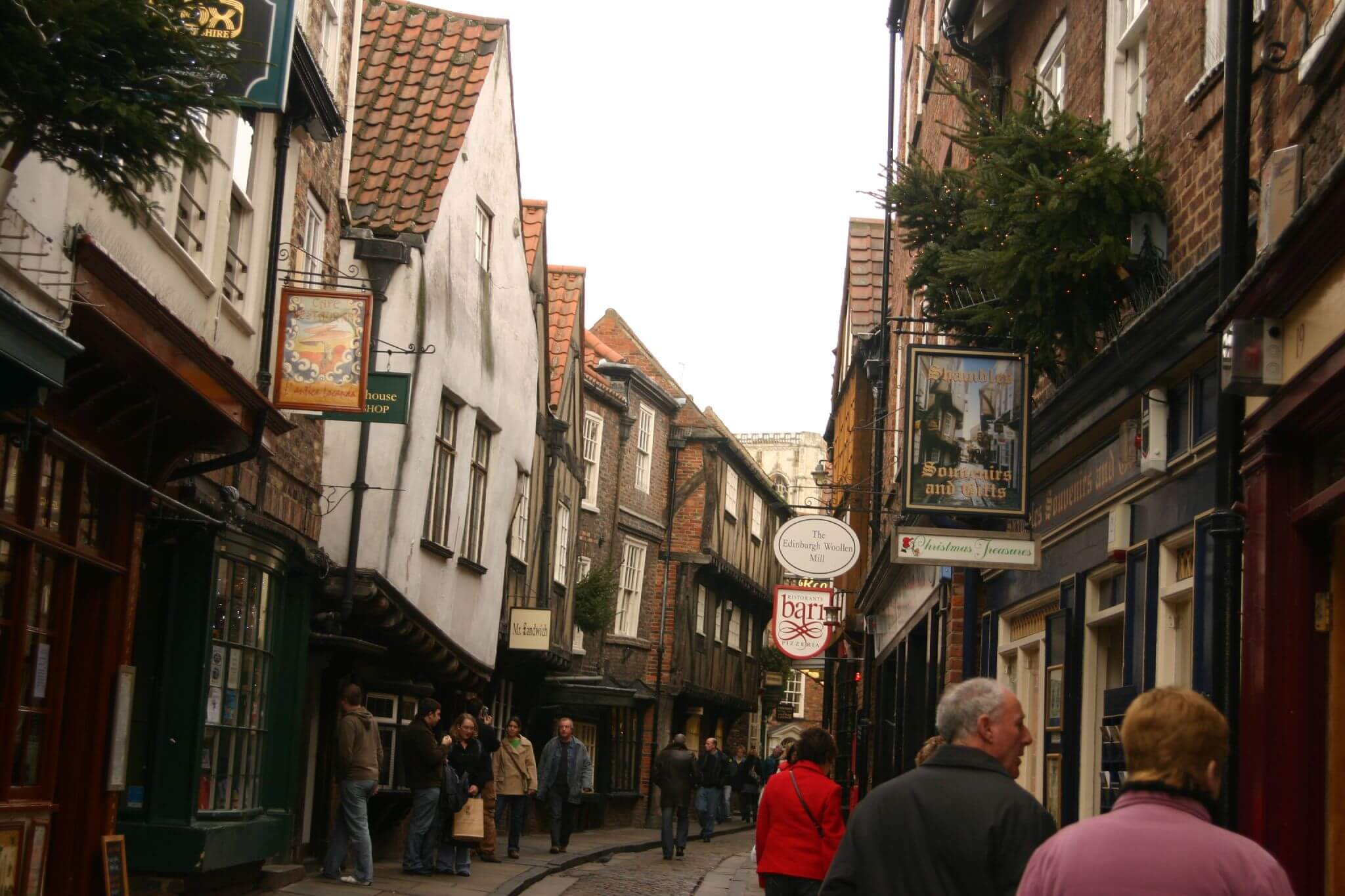 Bien que York soit jolie, malheureusement , y a seulement un rue qui très vieille – The Shambles (la rue sur votre photo). Les rues autour de la Cathédrale sont joli et vieille aussi, mais elles ne sont pas le même comme Stratford upon Avon.