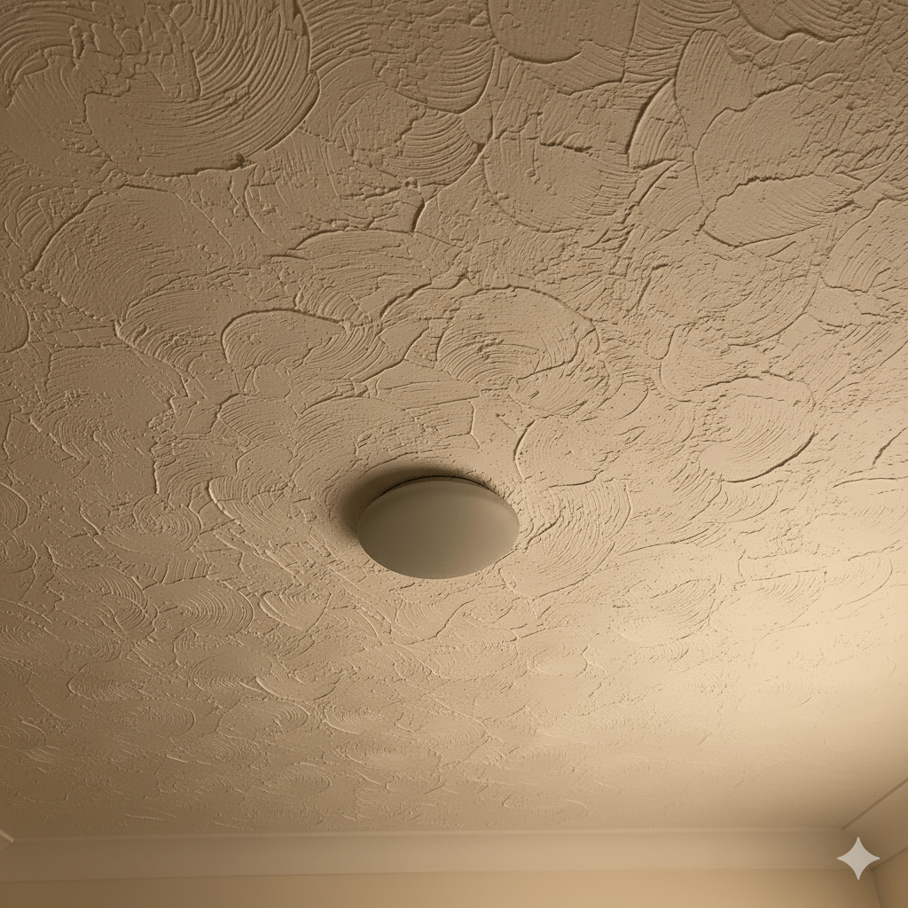 Levez les yeux et admirez les plafonds à texture. Moins courant dans les propriétés récentes mais assez commun dans le passé. Il existe plusieurs motifs possibles et en reliefs. Parfait pour emmagasiner la poussière et les toiles d’araignées.